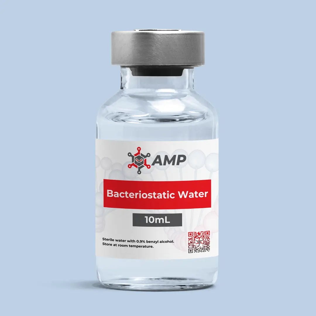 Vårt bakteriostatiska vatten är pyrogenfritt, sterilt och filtrerat till perfektion. Den innehåller 0.9% benzylalkohol som ett bakteriehämmande medel, vilket effektivt förhindrar tillväxten av mikroorganismer som kan kompromettera dina dyra prover och noggranna experiment. Varje 10 ml flask levereras med en garant på konsekvent, hög kvalitet, batch-testerad för att säkerställa att den uppfyller de strängaste kraven för ditt forskningsbehov.